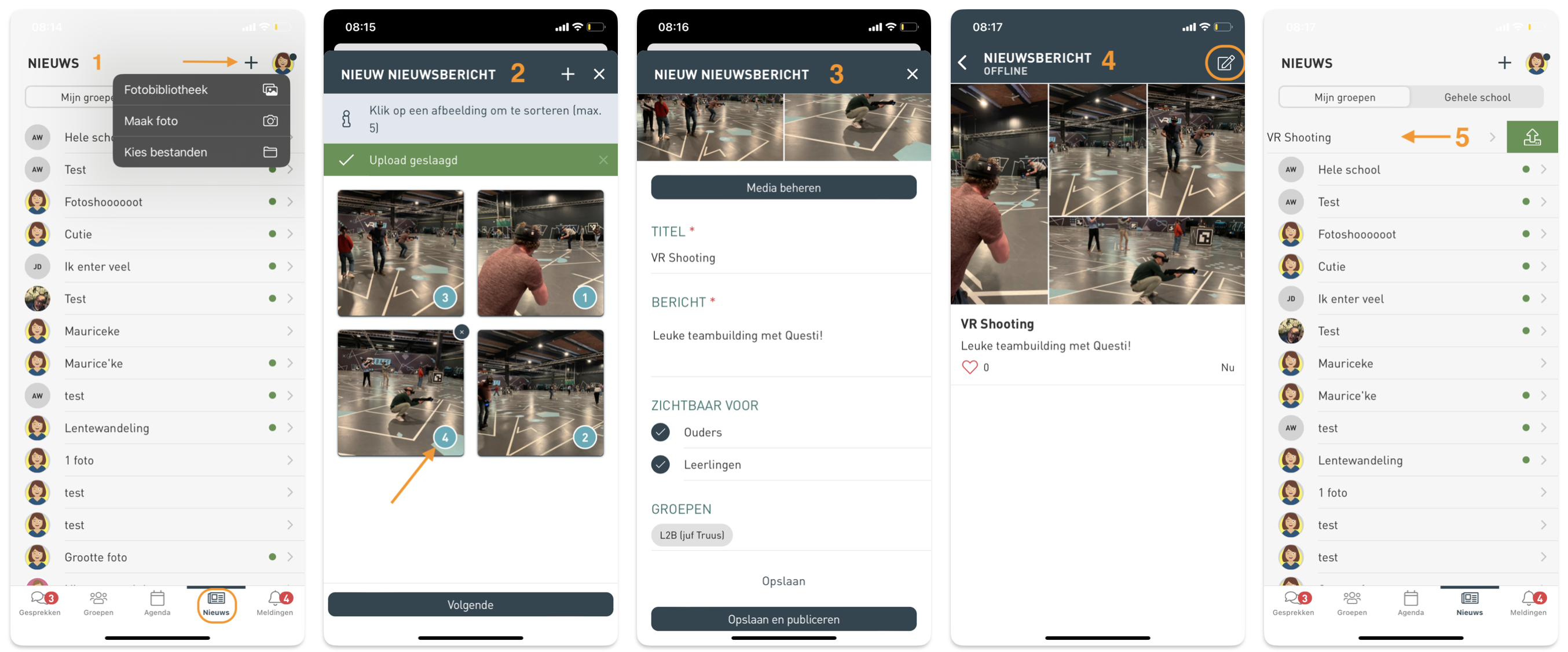 In de app kan je een nieuw nieuwsbericht aanmaken door onderstaande stappen te volgen.