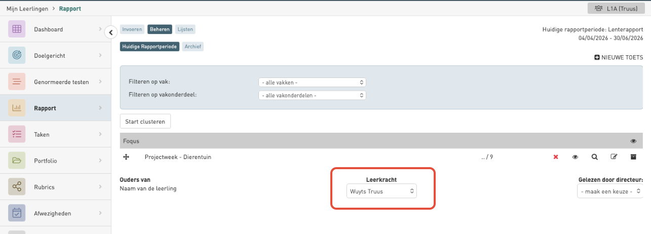 Onderaan bij rapport - beheren duidt men de naam aan van de persoon die zonet de aanpassing in het profiel maakte.