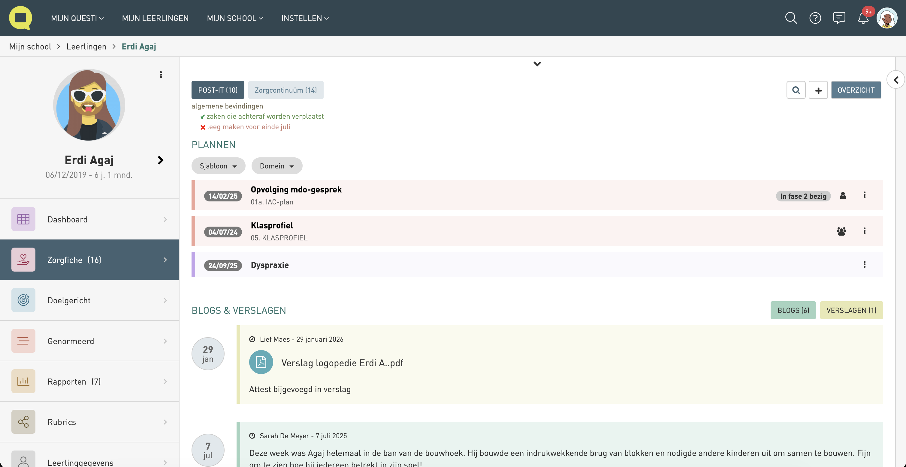 - overzicht = overzicht van de zorgfiche van deze leerling opvragen in pdf of tijdlijn