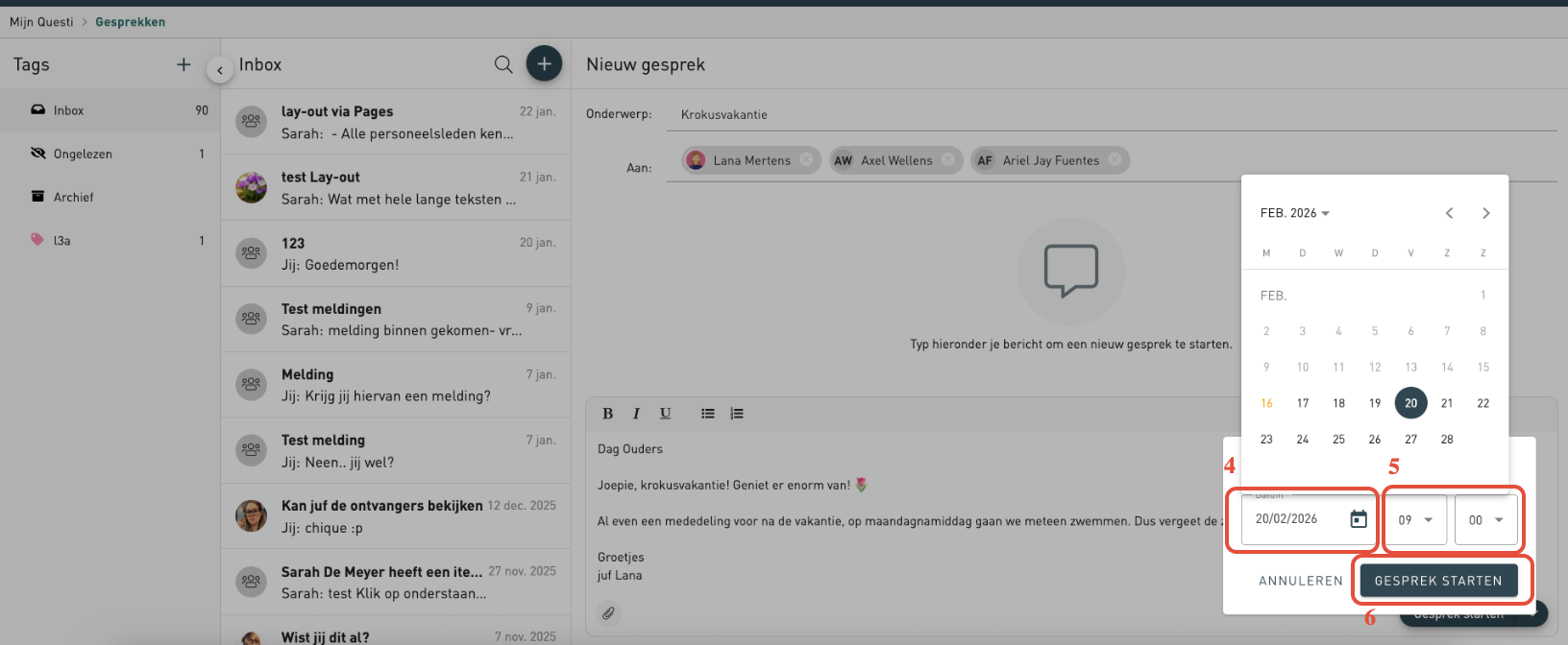 Kies in de kalender de datum waarop het bericht mag worden verzonden.