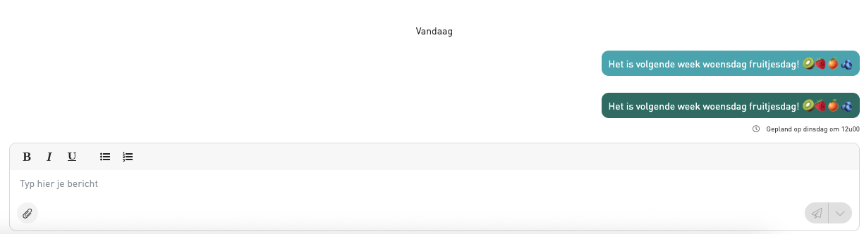 Het bericht wordt automatisch verstuurd op het ingeplande moment.