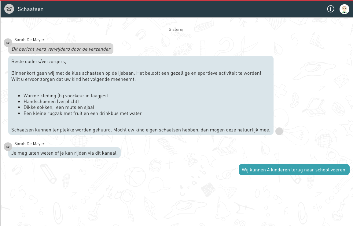 *Doordat het principe blijft dat ouders van andere kinderen elkaars berichten niet kunnen zien, komen die berichten ook voor de leerkracht niet meer in groepsgesprek terecht. Dit om verwarring te voorkomen.