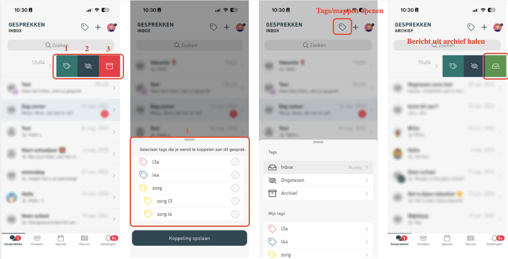 Hiermee maak je het gesprek opnieuw ongelezen.Archiveren