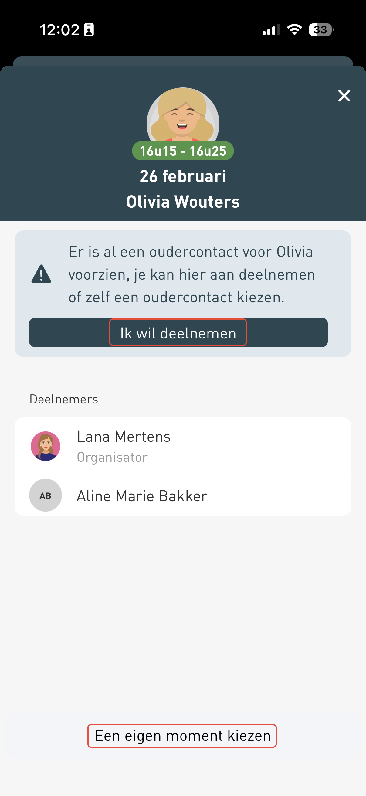 Heeft de andere ouder van je kind al een tijdslot gekozen?