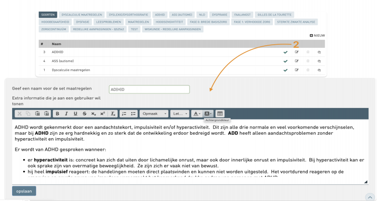 - Ga naar instellen - algemene instellingen - eigen formulieren - maatregelen