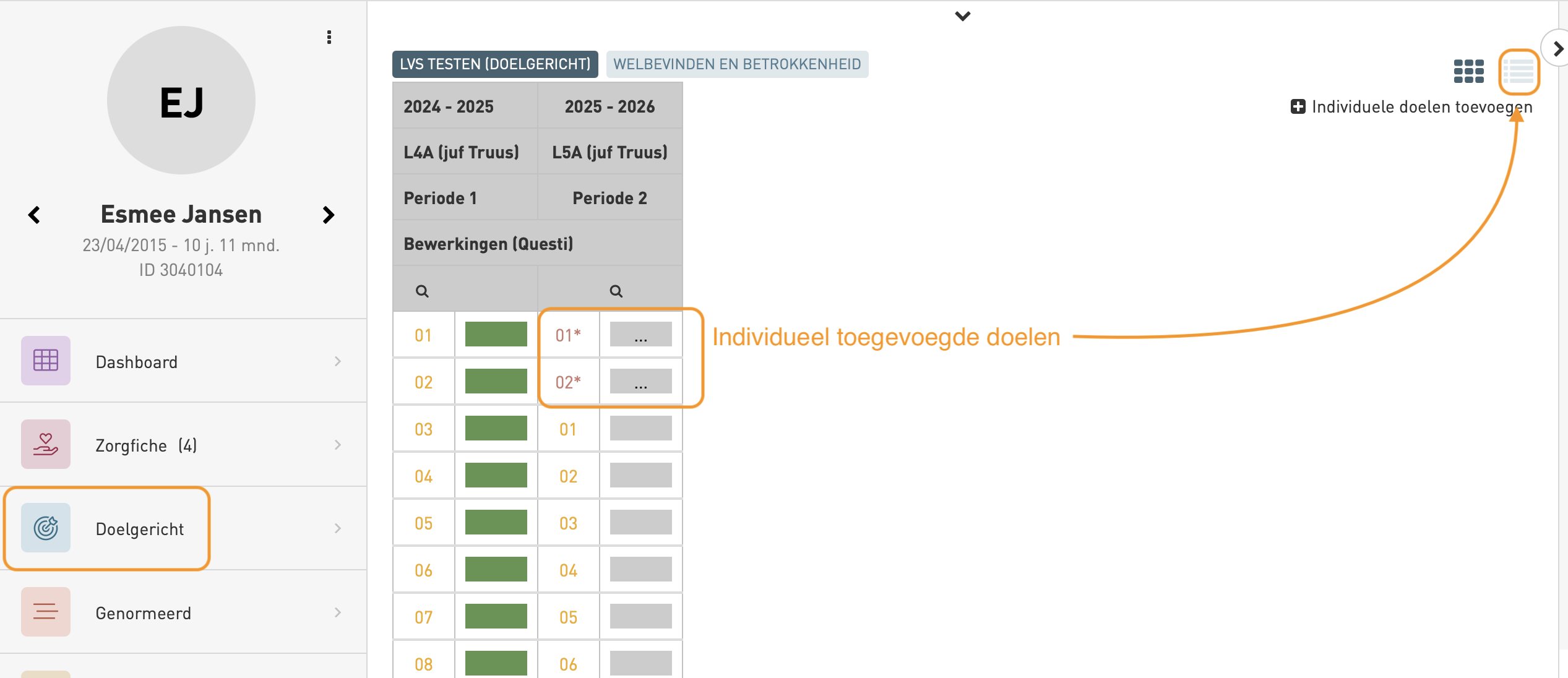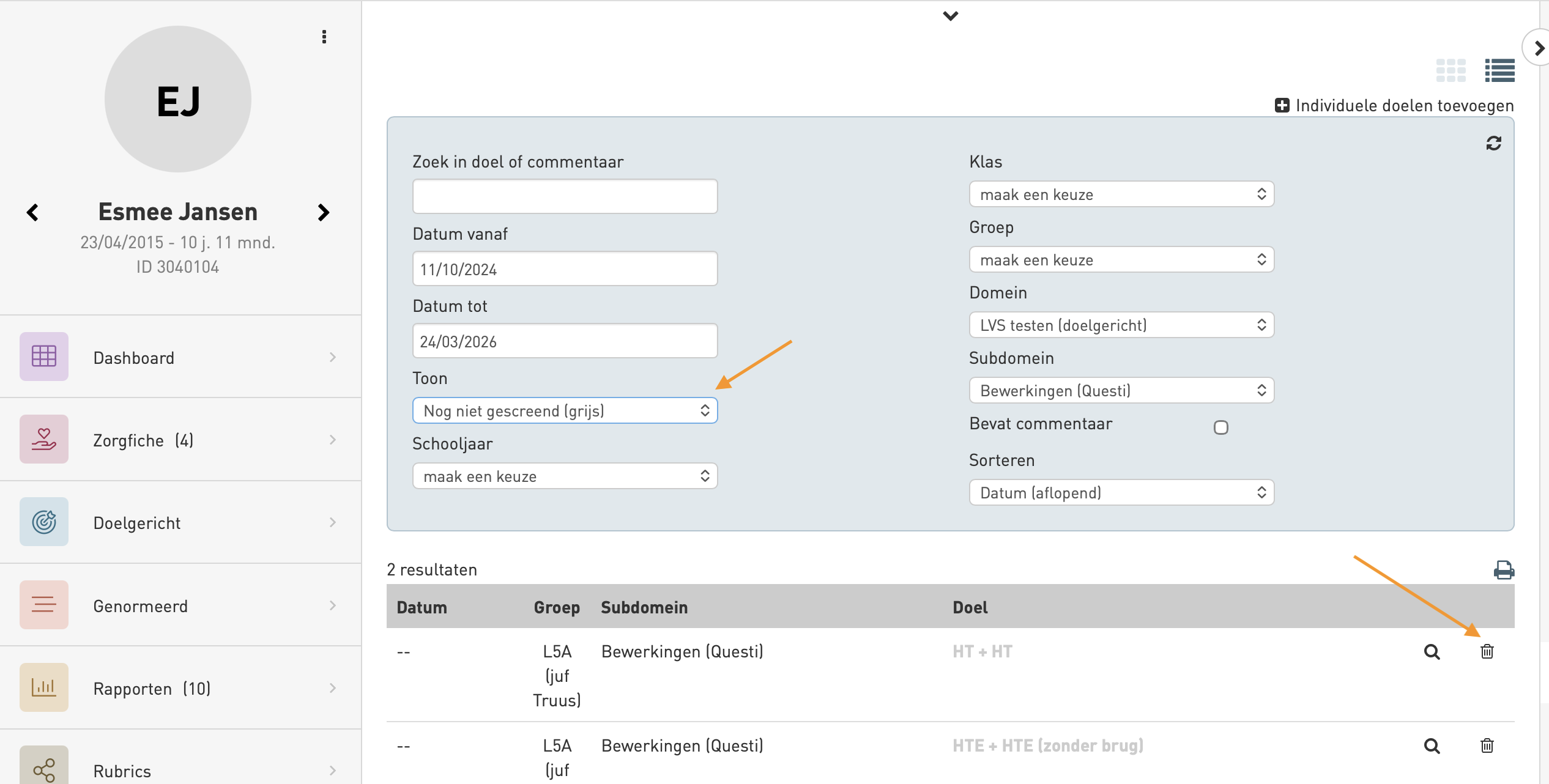 Dat kan alleen als het gaat om doelen die individueel werden toegevoegd bij de leerling. Én als die doelen nog nooit gescreend werden.
