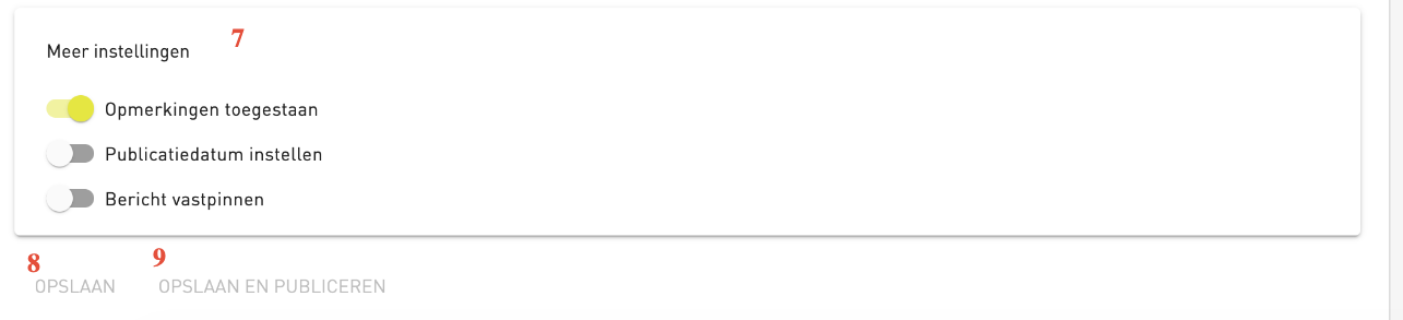 - Kies je voor opslaan, wordt je bericht enkel opgeslagen en nog niet zichtbaar op de nieuwspagina.