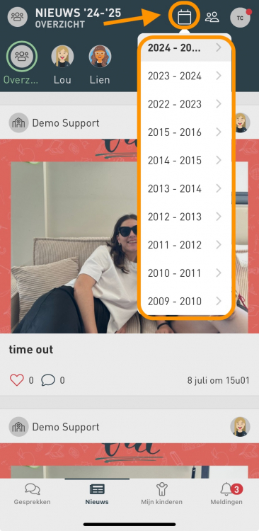 Ouders hebben een selectiefiltertje om gericht foto’s te bekijken van een bepaald schooljaar.