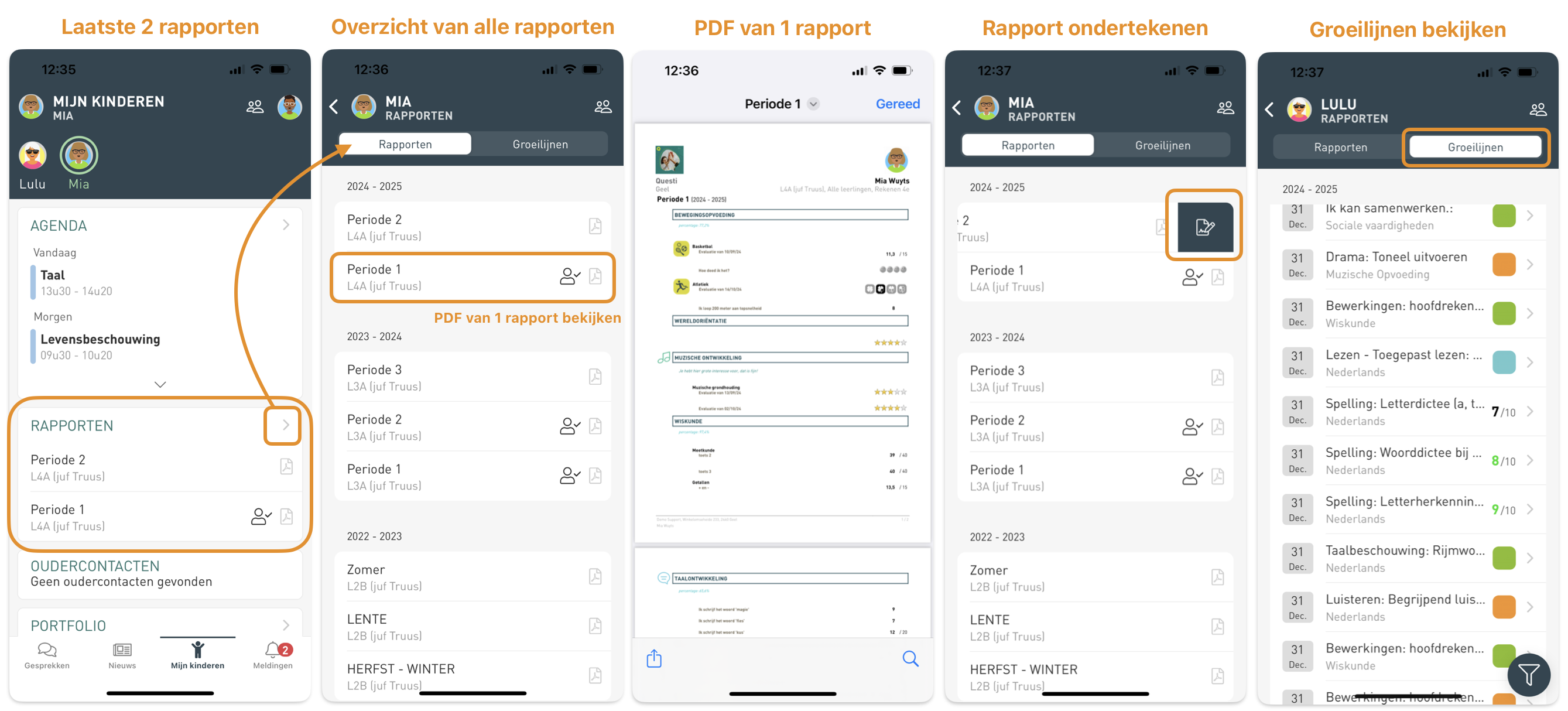 Onder 'rapporten' zie je ook een tab 'groeilijnen' (indien de school hiervan gebruik maakt).