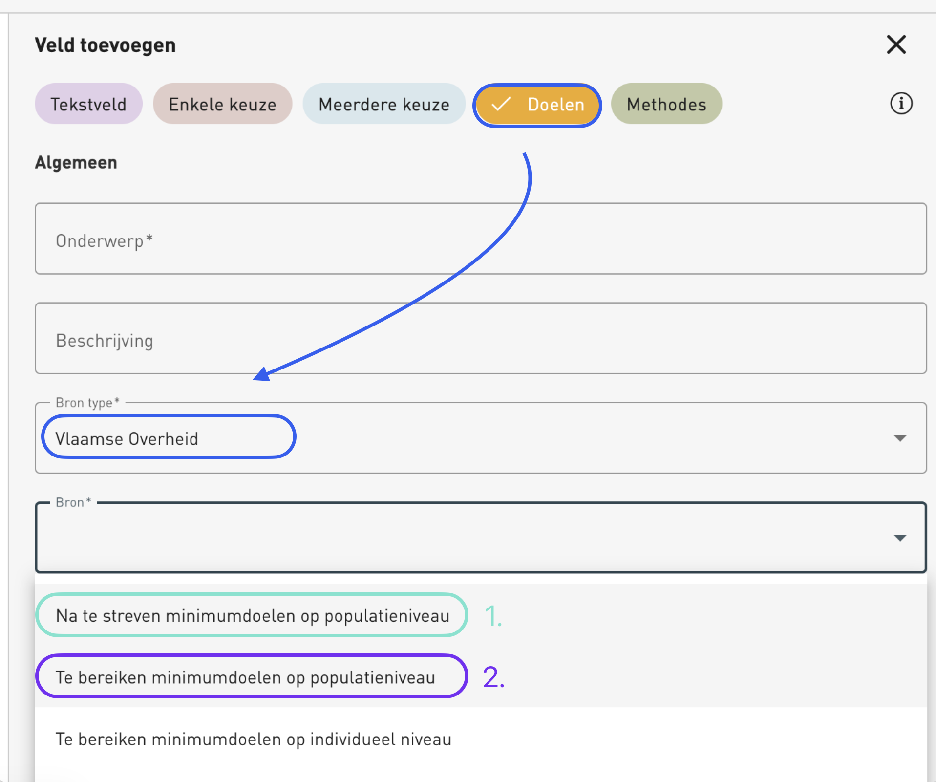 De minimumdoelen kunnen in de kleuterschool op twee manieren in de lesfiches gekoppeld worden.