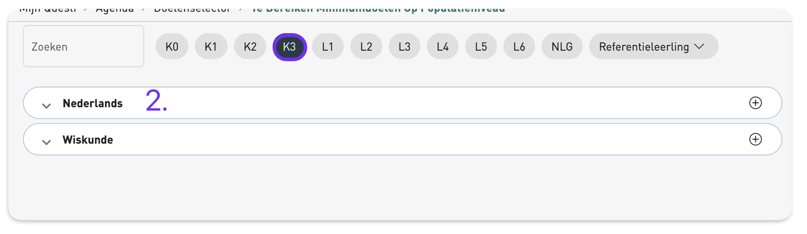 Je kan hier wel filteren op K3 en dan zie je enkel de te bereiken minimumdoelen voor de kleuterschool.
